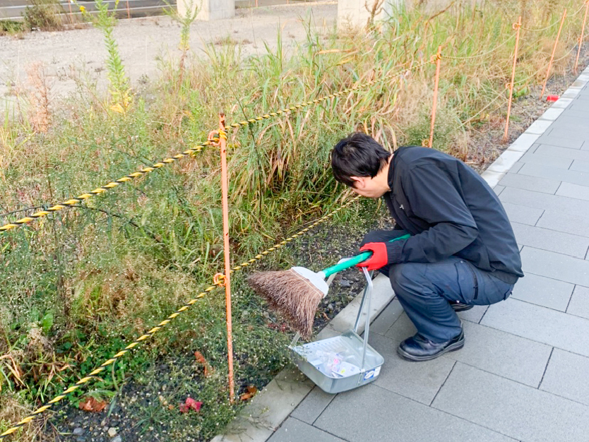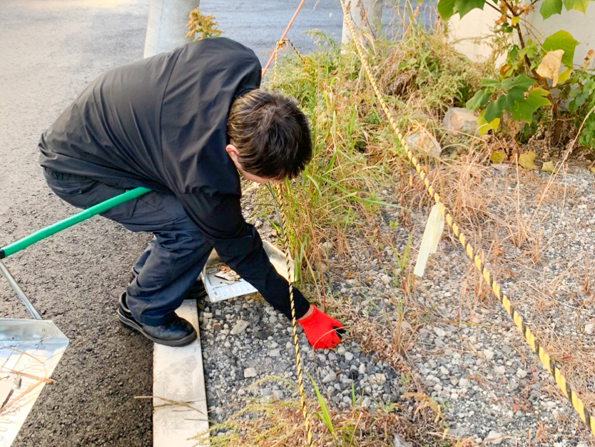 雑草、吸い殻、ポイ捨てのゴミなどを除去しました。