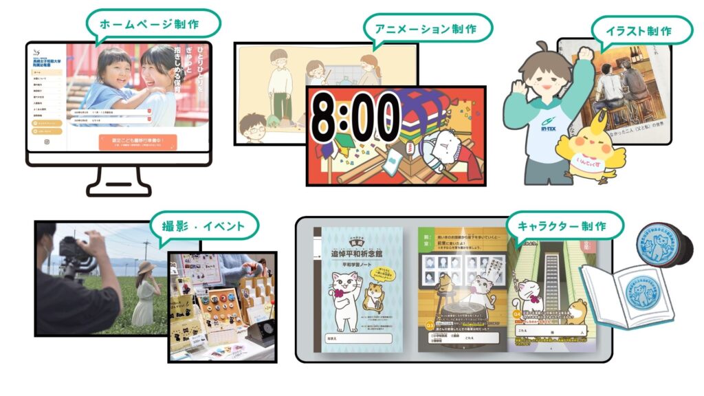 ホームページ制作、イラスト・アニメーション制作、SNS運用、イベント企画などなど……
